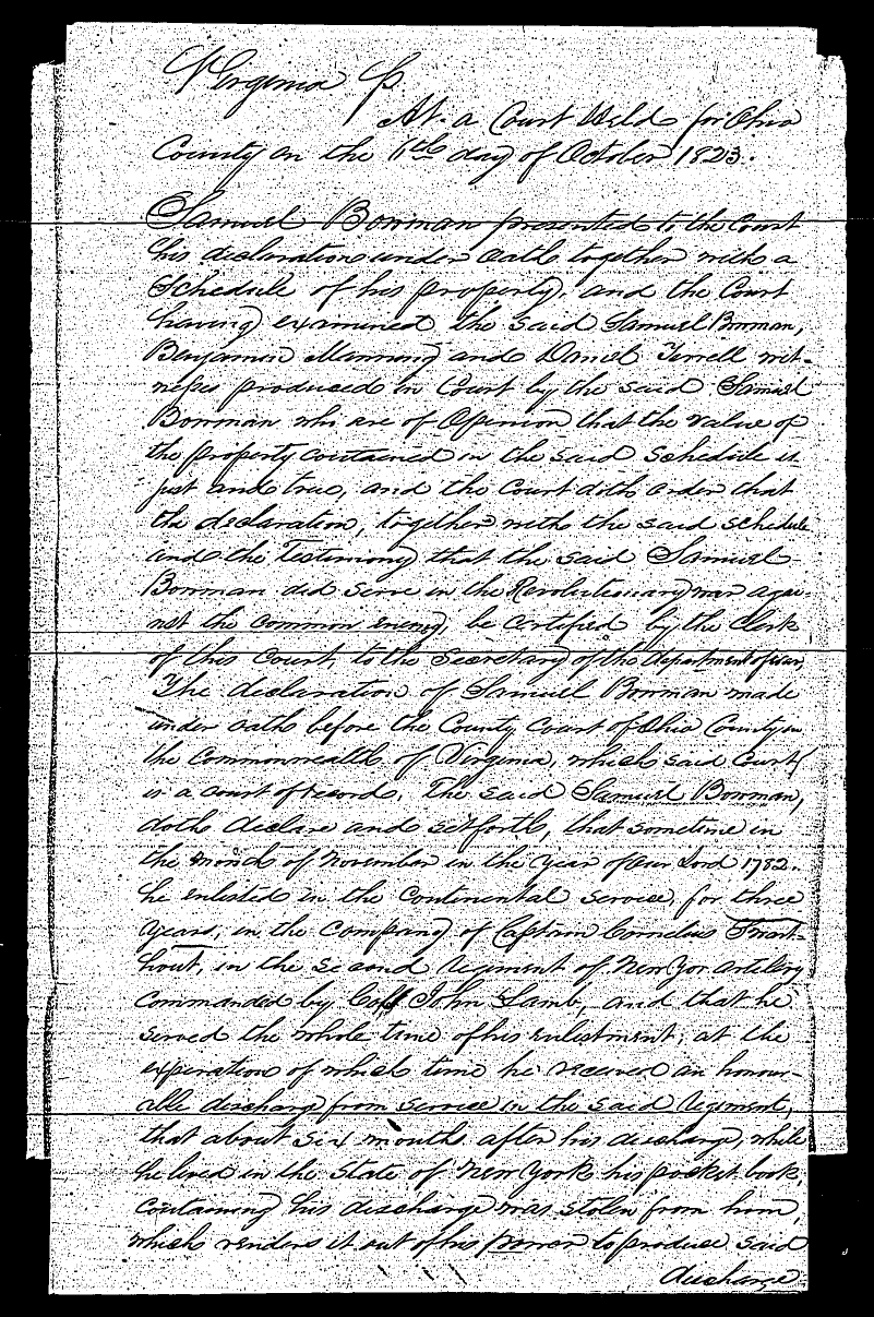 Bowman [?????] The deposition of Samuel Bowman Junr, and